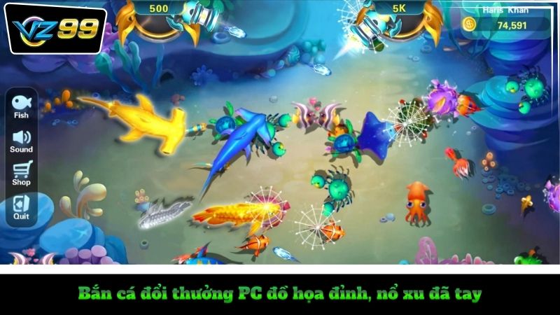 - Tính năng nổi bật: Đồ họa sắc nét, nhiều loại cá và vũ khí khác nhau.